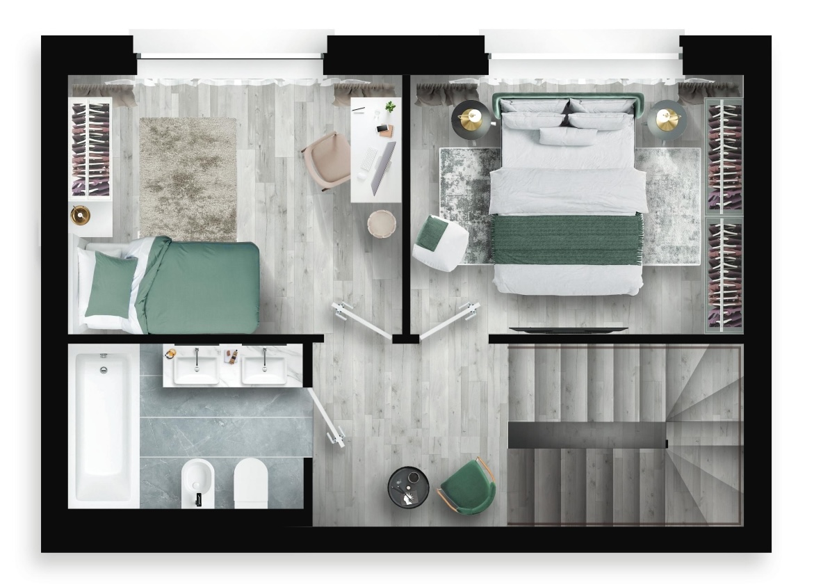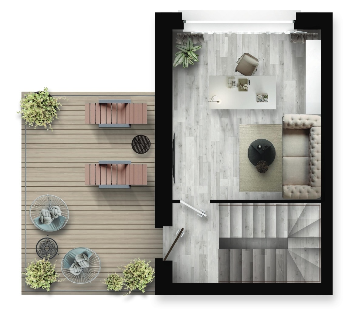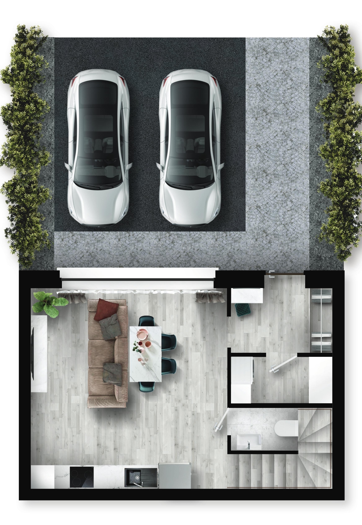 Each cottage in the community offers comfortable living and a cozy atmosphere. Stylish and modern interiors, functionality, and amenities are available to the residents of the community. The presence of spacious ground and rooftop terraces allows you to create your own unique space for relaxation.